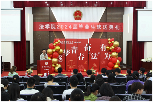 5月30日上午,我院“逐梦青春,奋‘法’有为”2024届毕业生欢送典礼暨“最后一课”在仙林校区德正楼模拟法庭隆重举行。学院党政领导班子成员,教师代表,毕业班辅导员以及2024届全体本科生、研究生参加典礼。典礼由学院党委副书记刘英华主持。