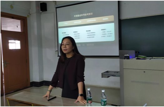 讲座开始,罗毅女士风趣地设置问答环节吸引了同学们的注意力,让大家对社会工作专业与人力资源岗位的适配度有了初步了解。接下来,她简单介绍了在职业发展过程中,现阶段学生可以完成的准备工作。通过职业兴趣测试即MBTI人格测试、霍兰德兴趣测评和职业能力相关测评初步明晰目标岗位。锁定目标岗位后,罗毅女士重点介绍了简历撰写过程中的注意事项,让同学们了解到有明确目标岗位、丰富教育背景、在校经历和项目经历与目标职位相关、总结提炼突出优势的简历才更容易通过筛选。“简历就像一篇论文,论证自己与目标岗位的匹配度”。她将简历制作和学生较为熟悉的论文写作相联系,并依据简历匹配度模型,指出专业背景不占优势的岗位竞争更需突出个人素质。这让同学们更为直观地去把握简历的制作方向。