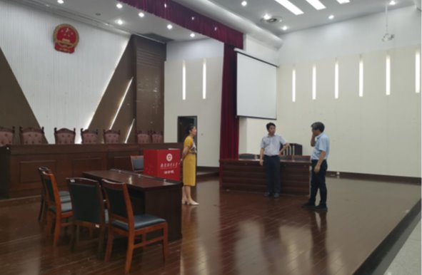 7月5日上午,由我院党委书记黄建国、院长胡宜奎、党委副书记刘英华以及实验员康兰媛组成的检查组,对德正楼法学实践教育中心进行了暑期安全工作检查。