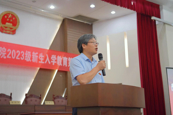 胡宜奎院长致辞。他表达了对来自五湖四海的新生的欢迎,随后提出四点建议:本科生要尽快转变观念,完成角色转换,积极主动学习,研究生要在研究深度上苦下功夫,聚焦较窄领域;珍惜时光,努力夯实专业基础,同时学会利用财经类院校的特色,灵活地从其他学科中汲取营养;锻炼自控能力,妥善处理人际关系;增强抗压能力,保持身心健康,要经得住挫折,记住“办法总比困难多”。