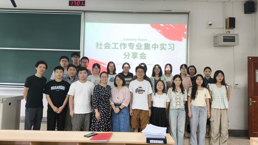 6月12日,我院社会工作专业大三学生经过为期两个月的专业捆绑实习,凝聚一堂,在德正楼111教室举行“实习归来话收获”分享会,分享实习归来的收获和心得体会。参与此次分享会的有社会工作专业学科带头人夏清瑕教授,社工系主任许芸副教授,班主任冯小茫老师,甘诺副教授,相鹏、张亮亮老师以及社工大一大二大三学生。