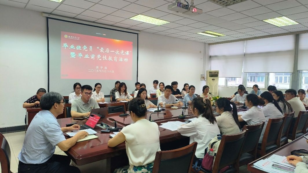 为进一步加强学生毕业前党性教育,6月18日下午,我院在党员活动室举行2025届毕业生党员“最后一次党课”主题教育活动。学院党委书记黄建国以“不忘初心、牢记使命”为题,为全体毕业生党员讲授了一堂深刻而生动的党性教育课,勉励青年党员牢记身份、砥砺前行,在新的人生阶段继续发挥先锋模范作用。
