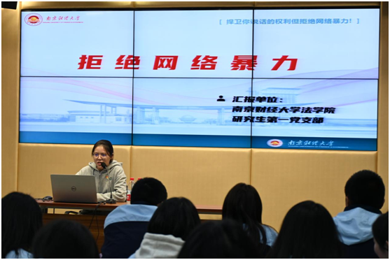 为进一步强化青少年法律意识,帮助其明晰网络暴力的定义、表现形式及危害,提升辨别与应对网络暴力的能力,10月27日,我院研究生第一党支部主动走进南京市玄武中等专业学校(樱驼花园校区),面向该校学生开展了一场主题鲜明、内容务实的“拒绝网络暴力”普法宣讲活动。