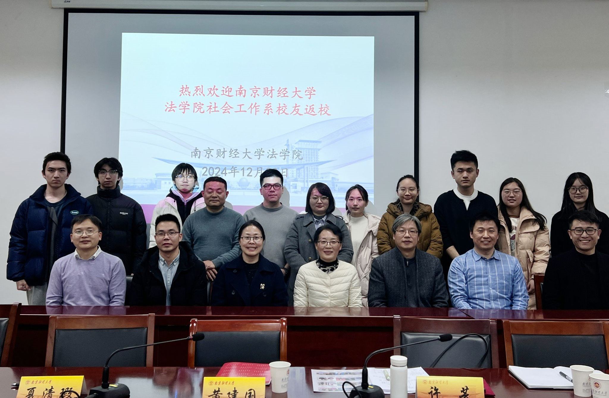 首先,许芸主任对前来的四位优秀社工校友分别进行了介绍。他们分别是2006届校友姚进忠,现为集美大学文7790必发集团院长、教授,曾为南财录制“我为南财代言”招生宣传视频并推荐社工专业,参加了第一次“南财新锐社工圆桌会”和多次会议;2007届校友冯元,现为湖南师范大学社工系讲师,全国高级社会工作师;2007届校友岳耀蒙,南京市栖霞区启蒙社区发展中心理事长,高级社会工作师,多年来一直积极支持南财社工系发展,不仅为学院举办会议捐赠资金,连续多年为学生提供专业实习和就业岗位;2012届校友闫昭澎,南京市社会儿童福利院社会工作部负责人,高级社会工作师,多年来一直关心母校发展。