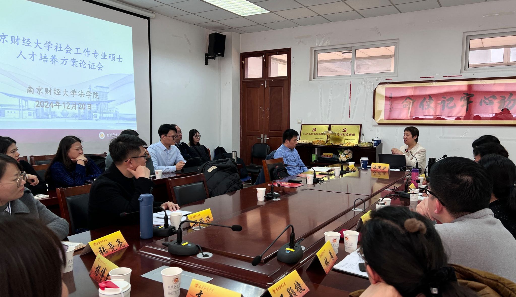 12月20日下午,我院在德正楼404召开了社会工作专业硕士人才培养方案论证会。出席此次论证会的专家有中国社会工作教育协会会长、北京大学教授马凤芝,集美大学人文学院院长、2006届校友姚进忠教授,2007届校友、湖南师范大学社会工作系冯元老师,南京市社会工作领域的行业专家有南京市栖霞区启蒙社区发展中心理事长、2007届校友岳耀蒙,南京市社会儿童福利院社会工作部负责人、2012届校友闫昭澎,南京市英博社会工作服务中心理事长王合涛,南京市祖堂山社会福利院社工部负责人茆大祥,南京市社会救助站科长何春兰,南京同心未成年人保护和服务中心社工张梦情等,以及我院副院长陈红梅教授,社工系夏清瑕教授,许芸系主任,林景副系主任,高丽茹副教授,王颖捷、张亮亮、杨博文老师等近30余人参加了本次论证会。夏清瑕教授主持本次论证会。