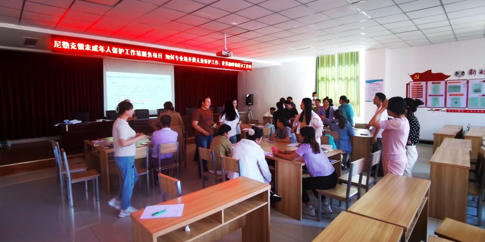 一、许芸主任为尼勒克县基层社区儿童主任开办“如何专业地开展儿童工作世界咖啡馆研讨工作坊”公益讲座