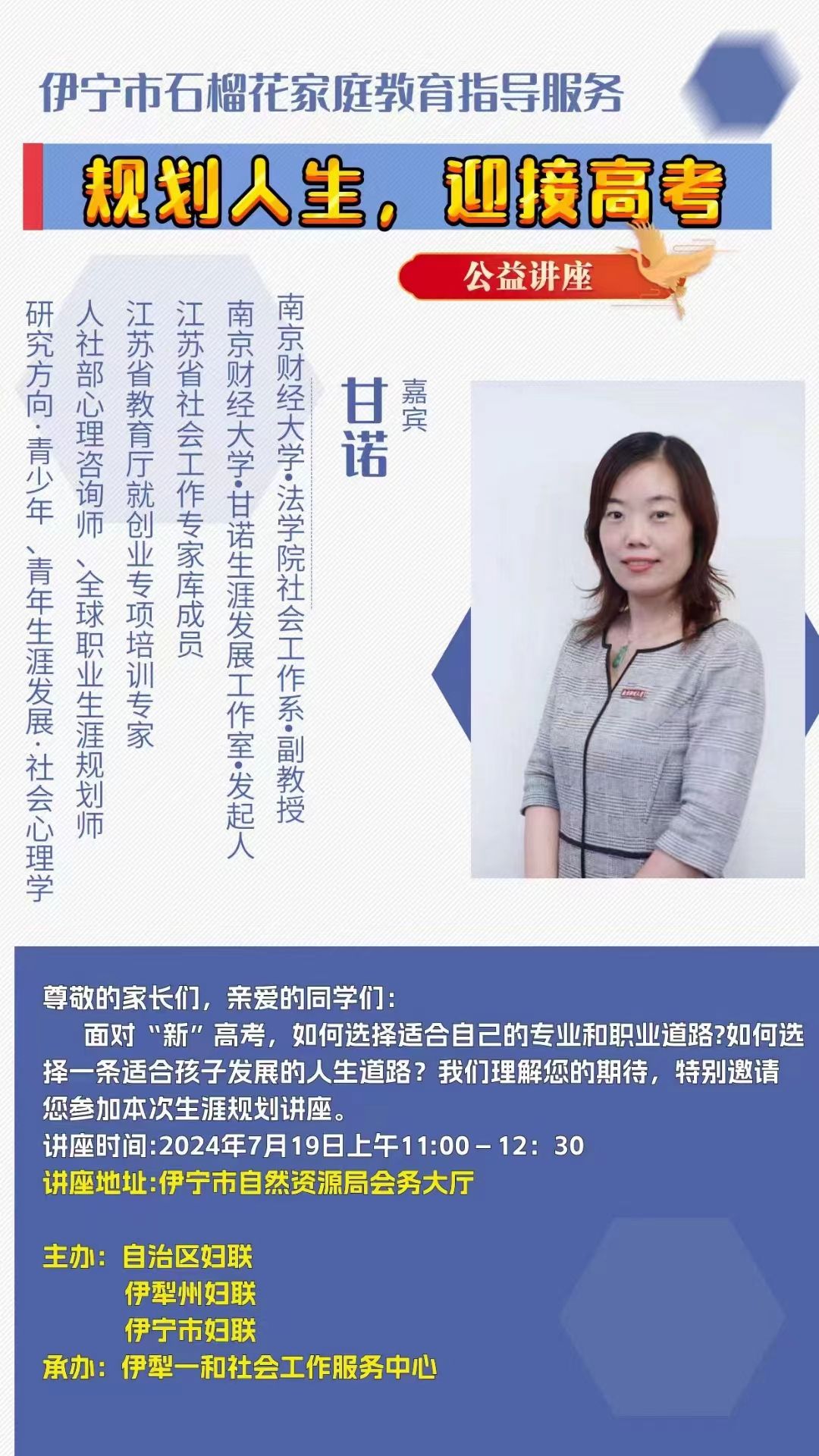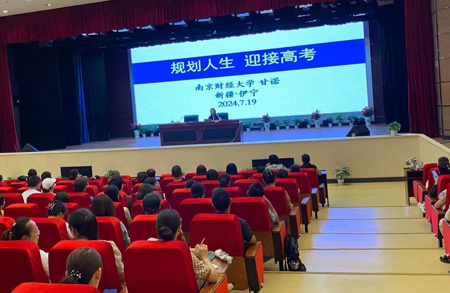 7月19日上午,甘诺副教授受邀为伊宁市300多位高中生家长开展主题为“规划人生,迎接高考”的公益讲座。甘诺副教授做了充分的准备,严谨细致地对新疆高考的各项大数据做了比较深入的研究,甚至带来了19日凌晨一点新疆教育考试院新鲜出炉的2024年高考的最新数据,给家长们进行了横向和纵向的分析对比。既解读了新高考的选科政策,又给出了中肯的选科策略;同时也为高考生如何结合自身实际和国家社会发展需求科学选择大学专业和院校提供了专业指导。甘诺副教授耐心地为家长和学生们答疑解惑,让他们对即将迎来的新高考有了一定的理解,对于高考志愿填报更加笃定。整场讲座有理论有事例,深入浅出,十分接地气,干货满满,原本一个半小时的讲座持续了两个半小时,得到家长和学生们的高度好评!