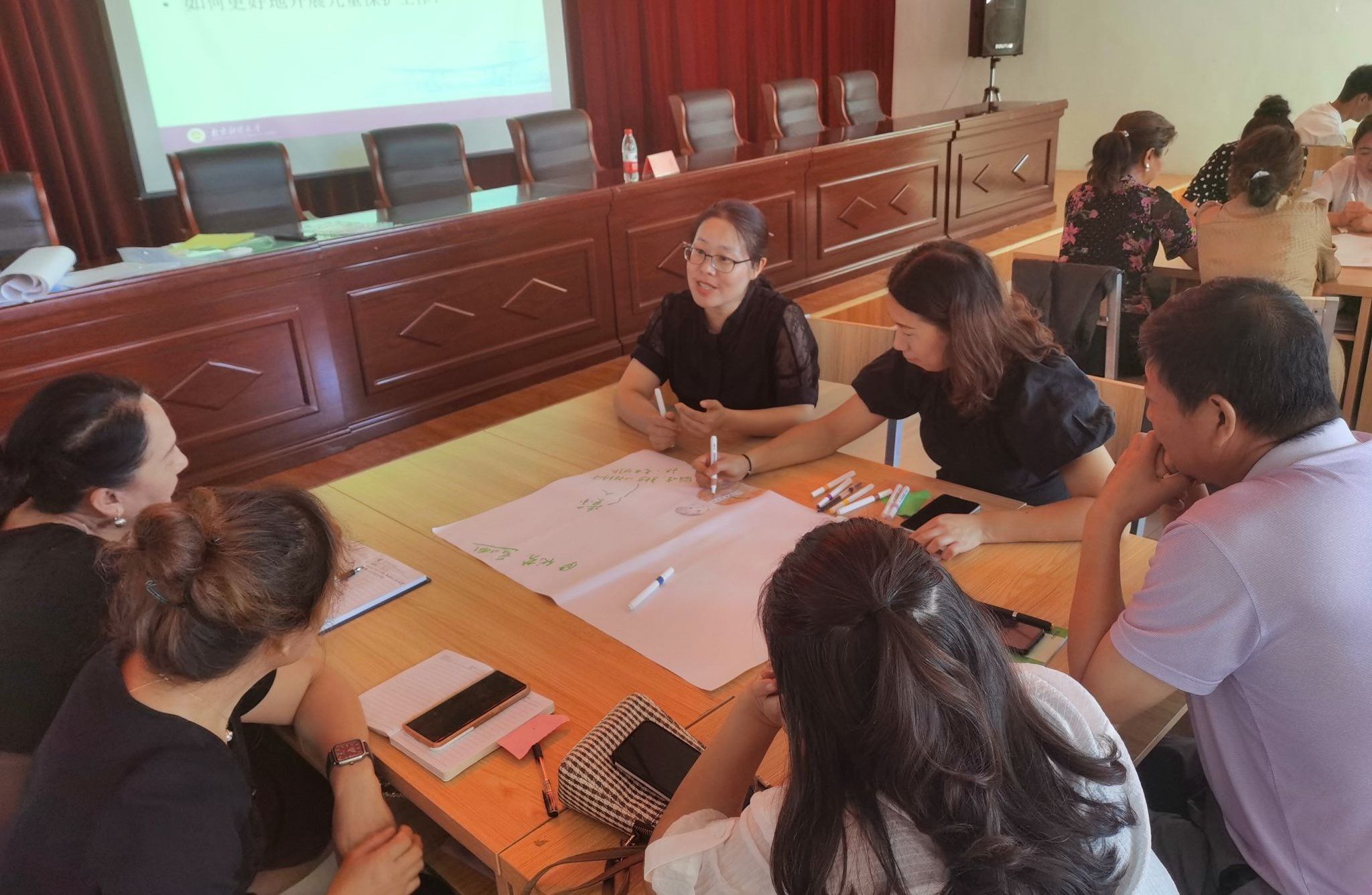 为进一步推动尼勒克县未成年人保护工作,建立健全儿童保障体系,提升基层儿童主任的业务水平和综合能力,7月17日,许芸主任应邀在尼勒克镇第六社区开办“如何专业地开展儿童工作世界咖啡馆研讨工作坊”专题讲座,尼勒克县各乡镇场负责儿童工作的民政干事及妇联工作人员约30余人参加。许芸主任深入浅出地介绍了“世界咖啡馆研讨法”这一活动形式,并带领各小组就“如何更好地开展儿童保护工作”这一主题展开讨论,将讨论的结果以海报形式呈现。最后,许芸主任对各个小组的讨论结果作回应,并分享工作经验,为大家答疑解惑。整个活动过程,学员们积极互动,现场气氛热烈,学员表示受益匪浅。