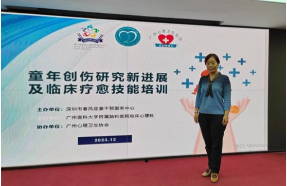 国家级继续教育项目童年创伤研究新进展及临床疗愈技能培训于2023年12月8日至10日在广州举办,我院甘诺副教授前往参加。童年创伤作为精神疾病和心理问题的易感因素,受到越来越多的广泛重视。此次培训的内容为呈现童年创伤相关生物学、心理、社会影响及临床干预最新进展,理解童年创伤的重要理论,学习创伤的评估方法,掌握童年创伤的疗愈技能。
