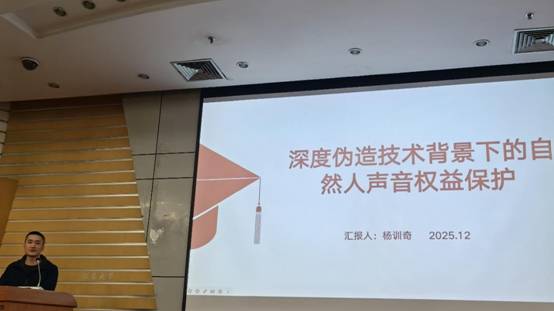 我院研究生杨训奇、沈悦同学在决赛中表现突出。杨训奇以《深度伪造技术背景下的自然人声音权益保护》为题,紧扣数字时代法治热点,凭借扎实的理论功底和清晰的论证逻辑荣获二等奖,并在分论坛中汇报演讲;沈悦的参赛作品《个人信息自决视角下社交账号继承和消灭问题》聚焦实践前沿,展现出较强的问题意识和学术创新能力,荣获三等奖。两位学子的优异成绩,充分彰显了我院研究生的专业素养与研究实力。
