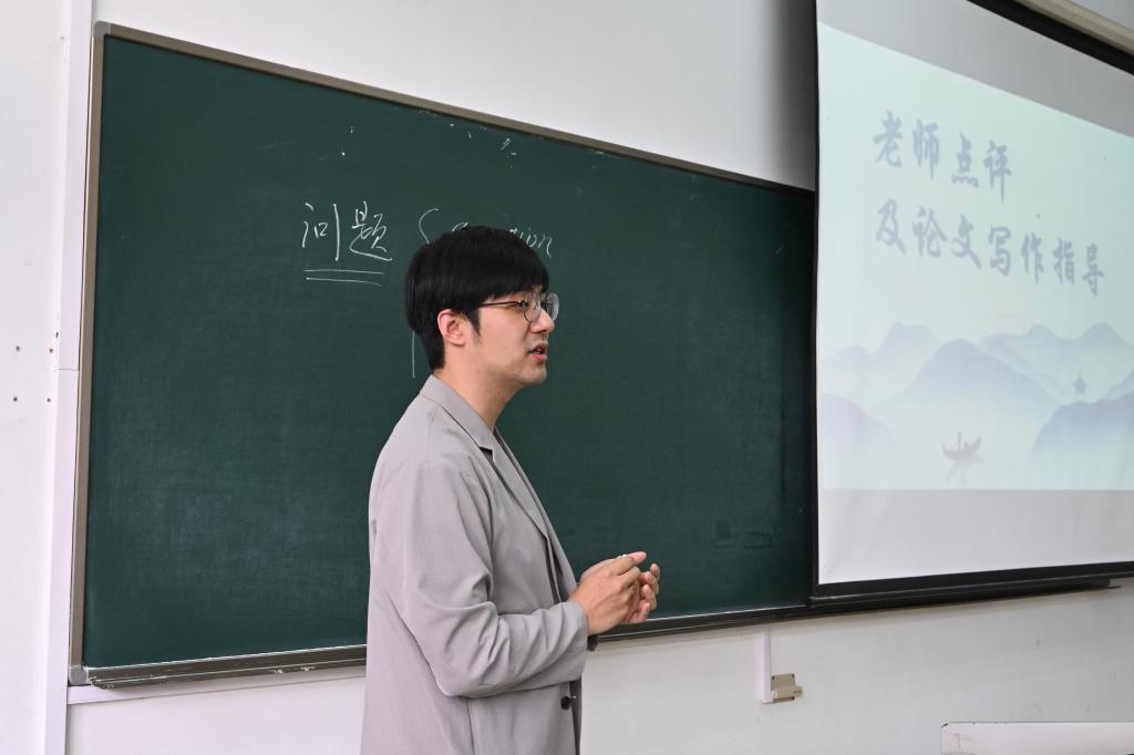 随后,孙劼老师也进行了精彩的分享。他讲述了论文的问题来源有三个方向:question、problem、issue。他认为问题的提出非常重要,它奠定了整篇论文的基调和方向。他也强调说明了创新的重要性,创新是参加比赛脱颖而出的利器。写论文时可以从论题、论证方式、论证结论三个方面进行创新。孙劼老师表示,无论从哪个方面出发,论文都可以围绕前人未表述的观点、方法进行创新。胡晓帆老师则详细讲述了她作为评委的评判标准。先看论题是否新颖,其次看论文的论述是否能够解决问题,论文写作不能照搬其他论文的观点,也不能光提出问题不去解决问题。