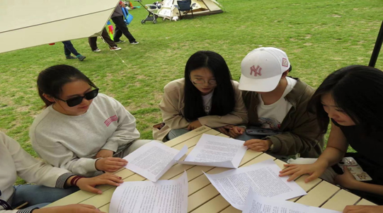阳光明媚,微风不燥,羊山湖公园内充满了欢声笑语。趣味运动会正式拉开帷幕,同学们分组参与了放风筝、踢毽子、打羽毛球等趣味运动项目。同学们尽情活动释放着身体的压力。赵烨杰同学说,“运动了一下,觉着身体特别放松和舒服,人也精神了不少。”随后,同学们围坐一起,举办了读书会。此次读书会以“美”为主题,大家一起分享在书中所寻找到的美,以美熏陶心灵,释放压力。通过此次读书会,同学们不仅拓宽了阅读视野,还激发了对美的追求和感悟,进一步促进了同学们对读书的热情。