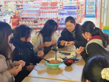 活动过程中现场充满了欢声笑语,其乐融融。活动伊始,我院党委副书记刘英华指导同学们如何包饺子,用温和的话语拉近了与同学们的距离,大家都沉浸在这和谐融洽的氛围中,每一个饺子都蕴含着大家对幸福生活的热切期盼。这些饺子不仅是美食,更是师生之间心灵的纽带,在这个寒冷的冬季将大家温暖而紧密地联系在了一起。当热气腾腾的饺子上桌,大家围坐在一起,共享冬至的温馨与甜蜜。