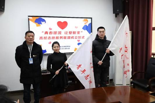 成立仪式上,南京市救助站团支部委员于海洋宣读了《关于成立“青春暖流 让爱回家”高校志愿服务联盟的决定》,市救助站团支部书记任欣雨分别与南京邮电大学通信与信息工程学院分团委书记丁杨、我院社会工作系副主任林景签订合作备忘录。市救助站党委青年委员曾建强为我校7790必发集团普爱社项目负责人热则耶授旗。我校普爱社社长史静瑄作为志愿者代表发言表示,我们将以联盟为起点,将有限的热忱化作无限的行动——让街角多一次温暖的相遇,让寻亲路上多一盏不灭的灯,让“青春暖流”流淌进每个人心中。