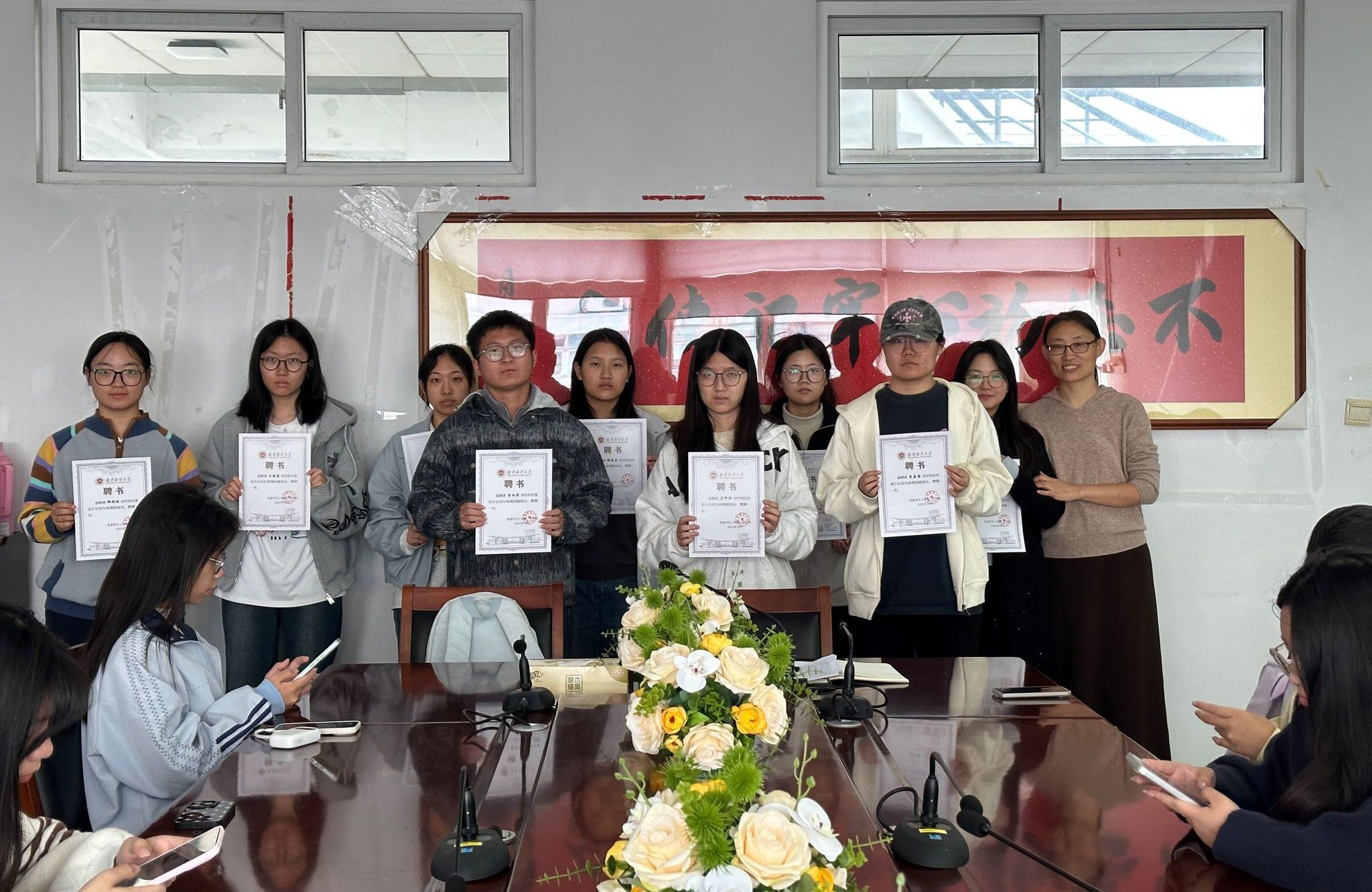 随后,王丽君老师向两个片区招生助理团颁发聘书,校优秀招生宣传员马柳颖同学分享了她的招生宣讲故事。她所在的团队获2024年本科招生宣传专项社会实践优秀团队一等奖。她向各位同学讲述了参加招生宣传活动中的具体联络和宣讲事宜,提醒同学们要提前了解各学校学生具体情况,开展具有针对性、个性化的宣传,积极为母校输送更多人才。
