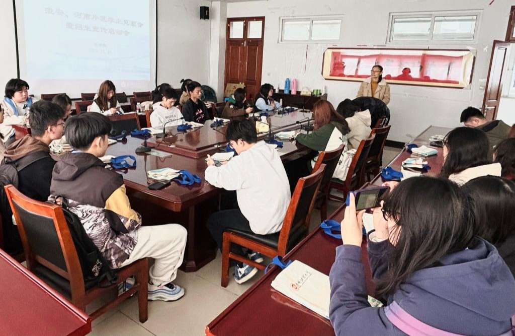 2023年11月16日中午12:40,我院在德正楼404会议室开展淮安、河南片区学生见面会暨招生宣传启动会,我院学工办主任王丽君以及淮安、河南片区近60位学生代表参会。