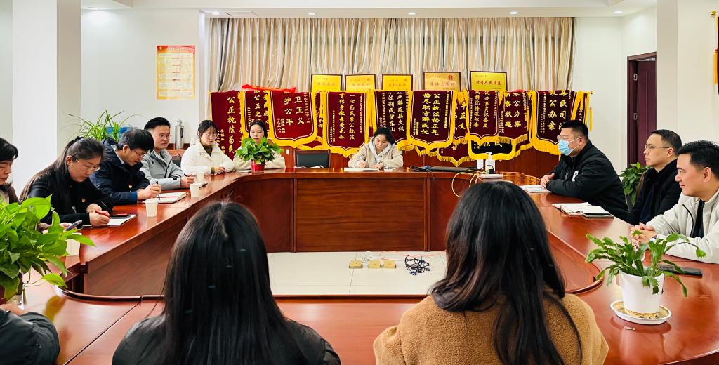 郭辉副庭长对此次实习作了具体安排,结合专业特点为我院实习生安排了对应的业务部门,并就安全事项、考勤管理、工作内容等方面提出相应要求。