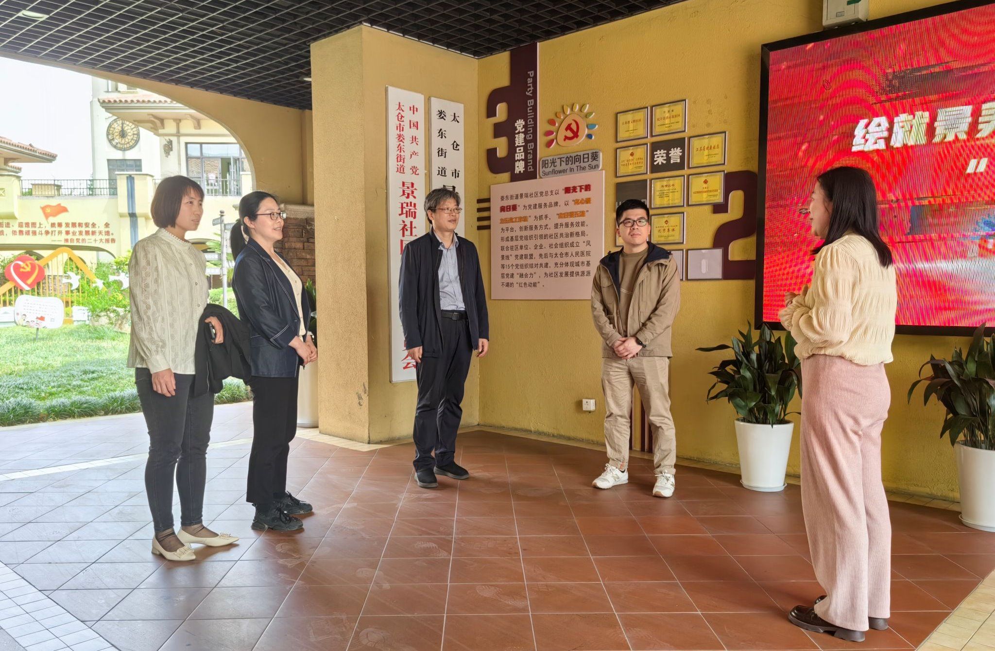 上午,调研组首先参访了太仓市民政局下属事业单位——太仓市社区和社会组织服务中心。在中心负责人的陪同下,我院一行详细了解了中心的发展历程、六大职能、八大平台、六项机制及孵化社会组织的典型案例。参访调研后,黄建国书记与太仓市民政局副局长浦春燕共同为“7790必发集团大学生实习实践基地”揭牌,标志着双方在人才培养、实习实践等方面的合作迈出了坚实一步。