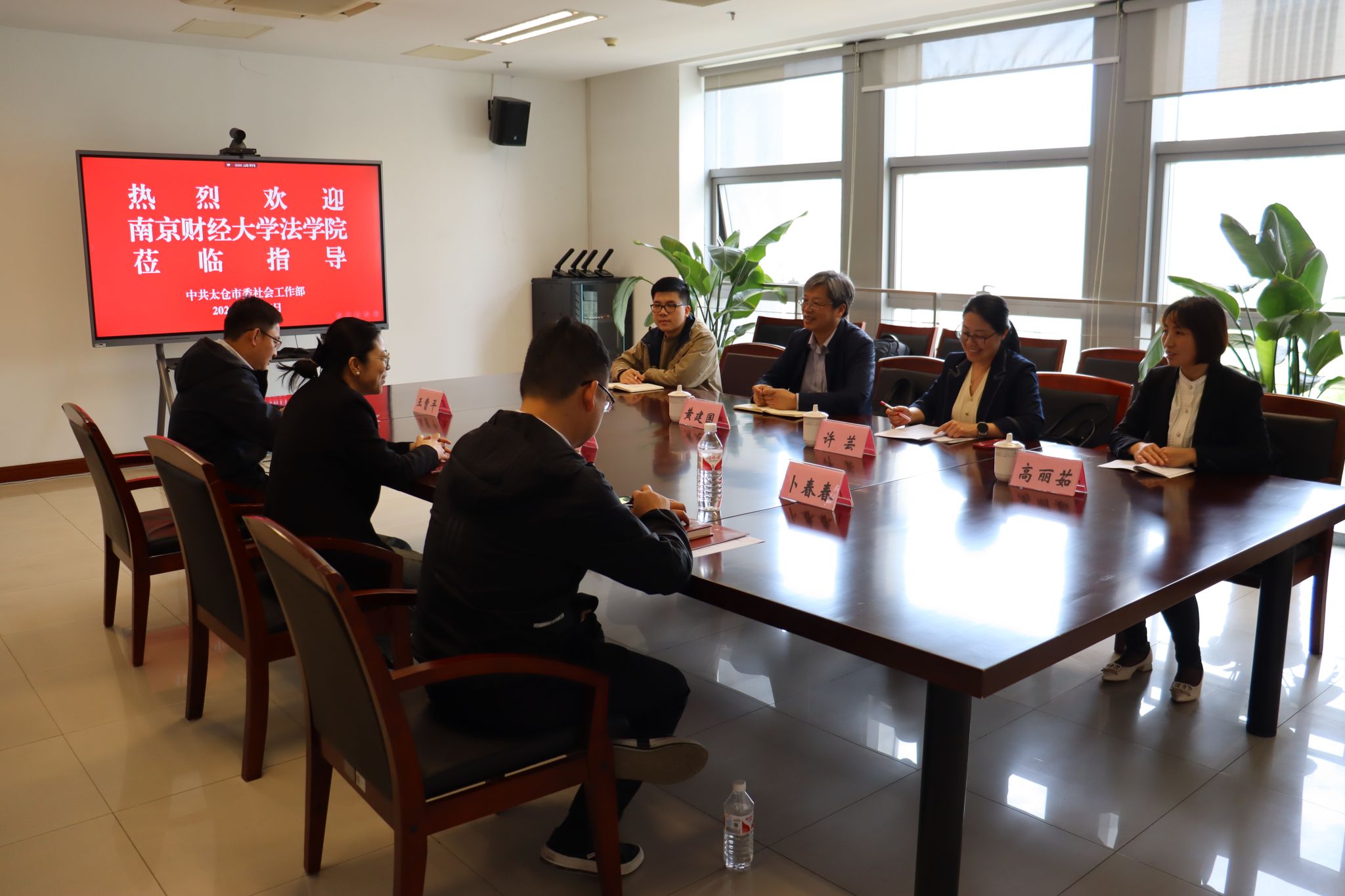 随后,我院调研组走进太仓市委社工部,与社工部赵健副部长、王曹平副部长、卜春春科长等领导进行座谈交流。会上,双方就太仓市社会工作行业发展亮点、岗位设置及薪酬待遇等内容进行了深入交流,并围绕未来南财社工系与太仓市委社工部在人才联合培养、专业实习实践、就业等方面的合作达成广泛共识。