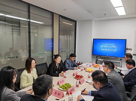 在河南豫汇律师事务所,党支部书记陈春盈简要介绍了律所的党建工作。他表示,律所始终坚持抓党建带群建促所建,充分发挥党组织政治核心作用和党员先锋模范作用,教育引导律师坚决拥护中国共产党领导,拥护社会主义法治,坚定不移地走中国特色社会主义道路。任旗主任表示,这几年,律所无论是规模、团队、业绩等都取得了斐然的成绩,做到了党建有品牌,业务有水平。院所双方是法律共同体,有着共同的法律信仰、社会责任以及价值追求,希望双方能将合作常态化、制度化。合伙人亓冬生希望高校在人才培养的过程中更加注重学生法律信仰的培养、增加案例教学的数量、拓展校企合作的渠道。