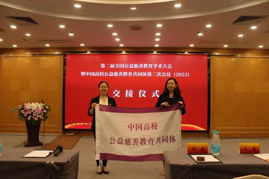 此外,本次会议还进行了下一届全国公益慈善教育学术大会承办单位的交接仪式。长江商学院作为“中国高校慈善教育共同体”成员单位,经议事会表决通过,成为下一届会议的高校承办方。