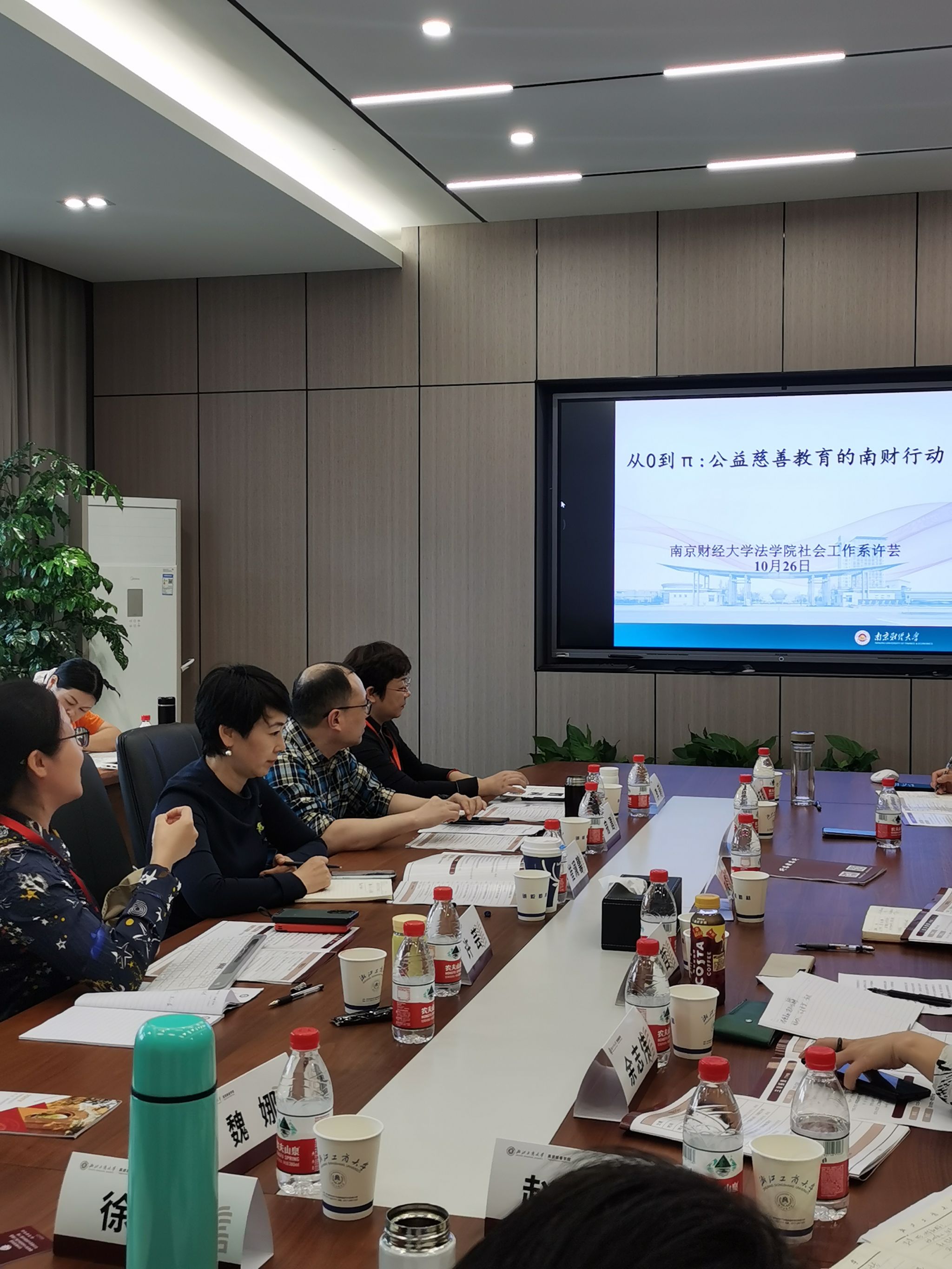 26日上午主旨会议后,下午的会议设置了8个平行论坛,分别为数字时代的公益慈善人才培养、公益慈善人才培养中的校社协同、慈善文化与法治、慈善捐赠、数字慈善、企业慈善、慈善促富、慈善与社会治理。许芸主任受邀参加了“数字时代的公益慈善人才培养”分论坛,并作了主题为“从0到π:公益慈善教育的南财行动”的分享,向与会者介绍了近年来南财大在社会工作本科教育中如何融入公益慈善教育,以及取得的成绩、未来的发展思路,并与与会嘉宾就数字时代如何培养更具创新力和适应性的公益慈善人才进行了研讨。