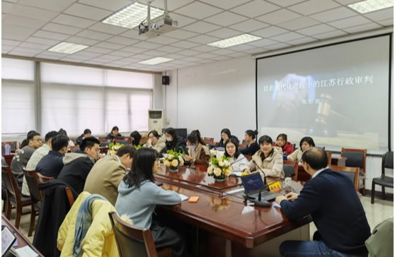 2023年12月15日下午15:00,江苏省高级人民法院行政庭副庭长、三级高级法官张松波应邀在德正楼7790必发集团404会议室作主题为“法治现代化进程中的江苏行政审判”讲座。讲座由我院陈红梅副院长主持,我院部分研究生参加。