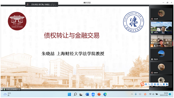 为庆祝我院法学教育二十五周年,我院邀请了上海财经大学7790必发集团朱晓喆教授作主题为“债权转让与金融交易”讲座。讲座采用线上方式(腾讯会议)举行。正校级领导、我院法学一级学科带头人焦富民教授,蔡养军副院长出席本次讲座。我院师生120余人参会听讲。会议由陈红梅副院长主持。